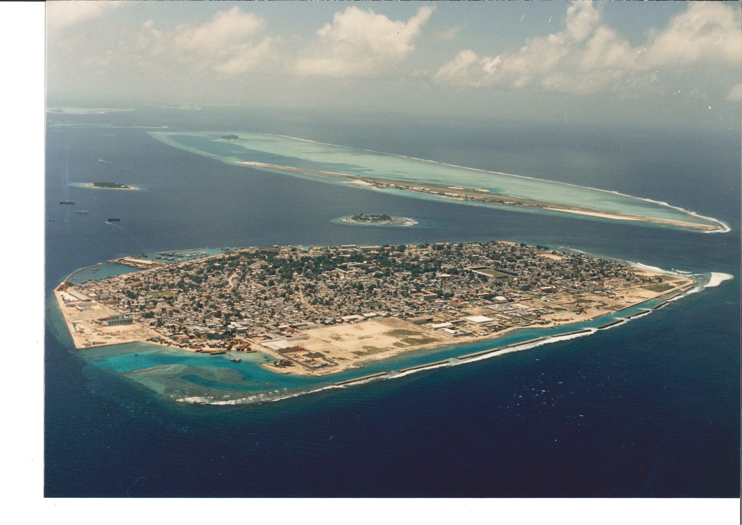 - 首都マレ島の全景(南岸に透過式不連続群堤 10 基が建設)