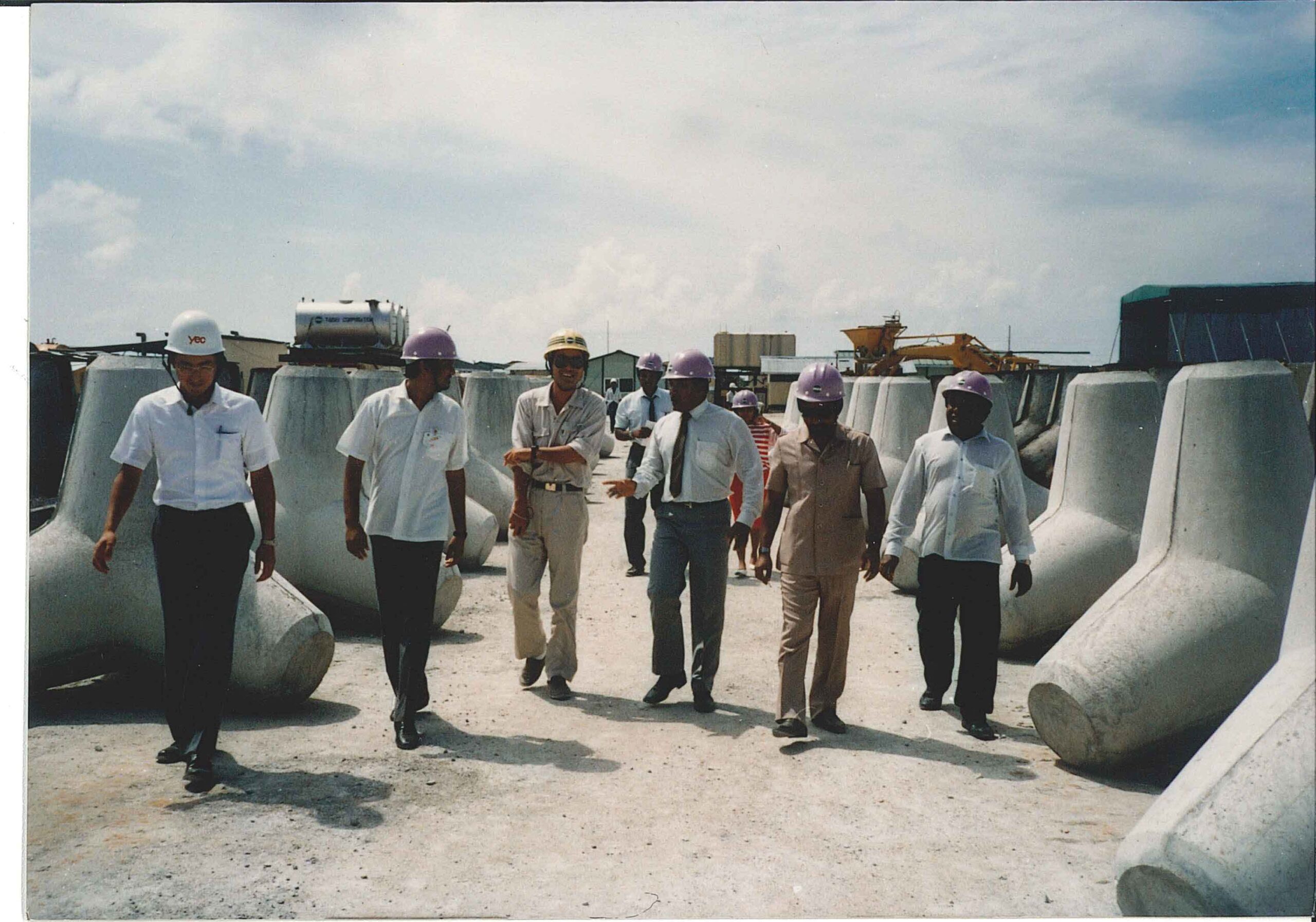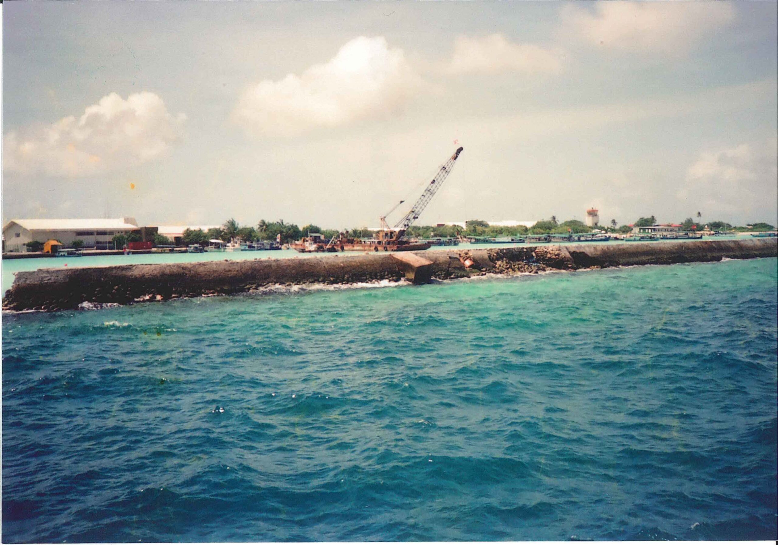 マレ島は1987年4月のサイクロンによる高潮で島の3分の1が冠水すると共に、南岸東端区域が内陸深く広範囲に侵食された。これにより、首都機能が麻痺したのに加え、排水の不十分さから浸水が長期化して伝染病が発生し、過去最大の被害に見舞われた。同国政府は緊急支援として日本政府に対し、同島の護岸整備事業にかかる無償資金協力を要請。護岸は高潮の危険にさらされ緊急性の高いマレ島南岸地域の約1.52kmを対象に、高潮災害を軽減することを主目的に計画・整備され、1990年に完工した。護岸の形式は異形コンクリートブロックを積上げた離岸堤(透過式不連続群堤)とし、離岸堤を東西に10基建設し、離岸堤の内陸側に航路を確保できる構造とした。その後、日本の無償資金協力によって2002年にはマレ島全体の護岸整備事業は完了。高潮被害の軽減と同時に、島の水没の問題も解消された。