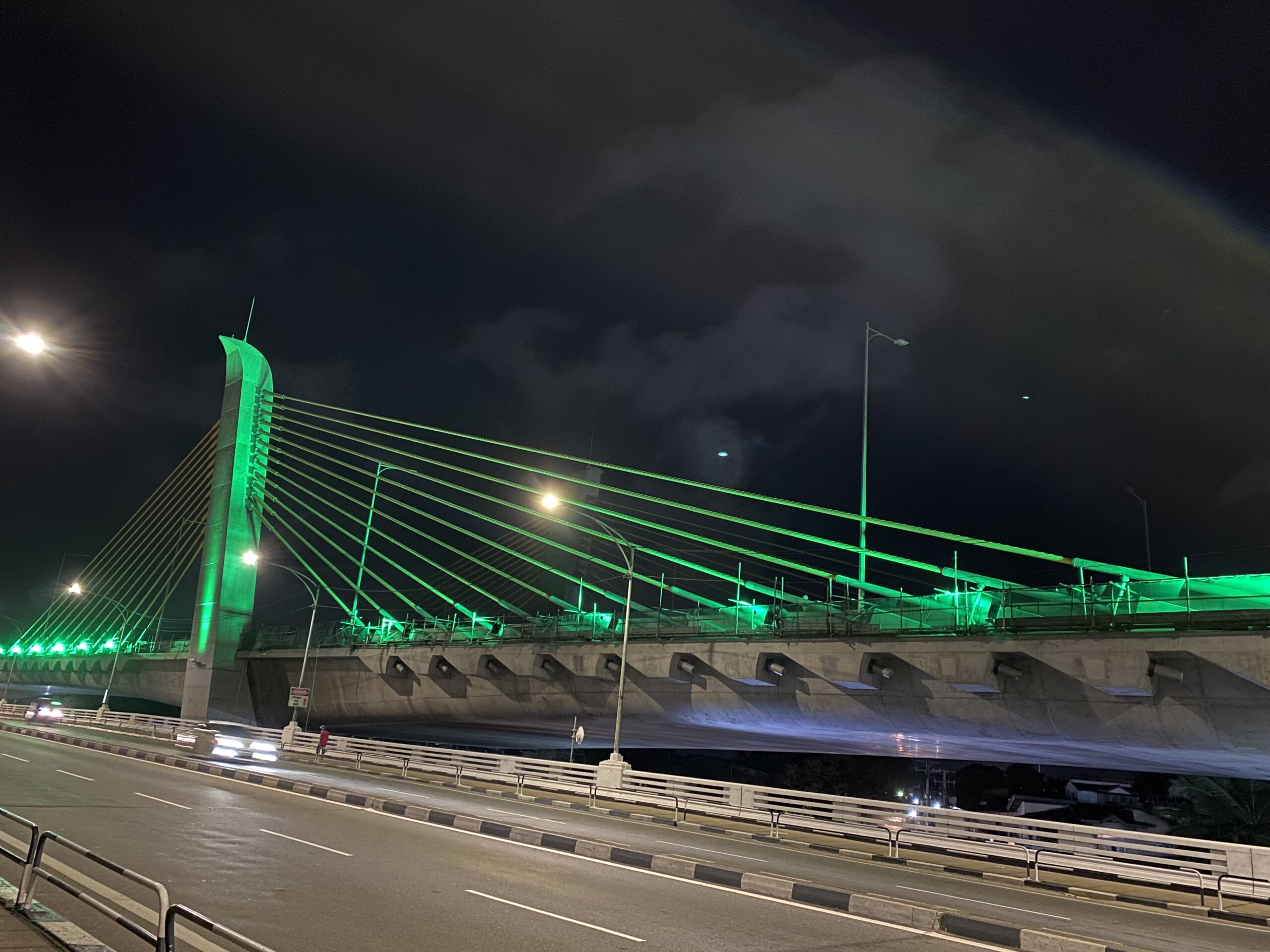 - ライトアップされたケラニ河新橋の主塔部