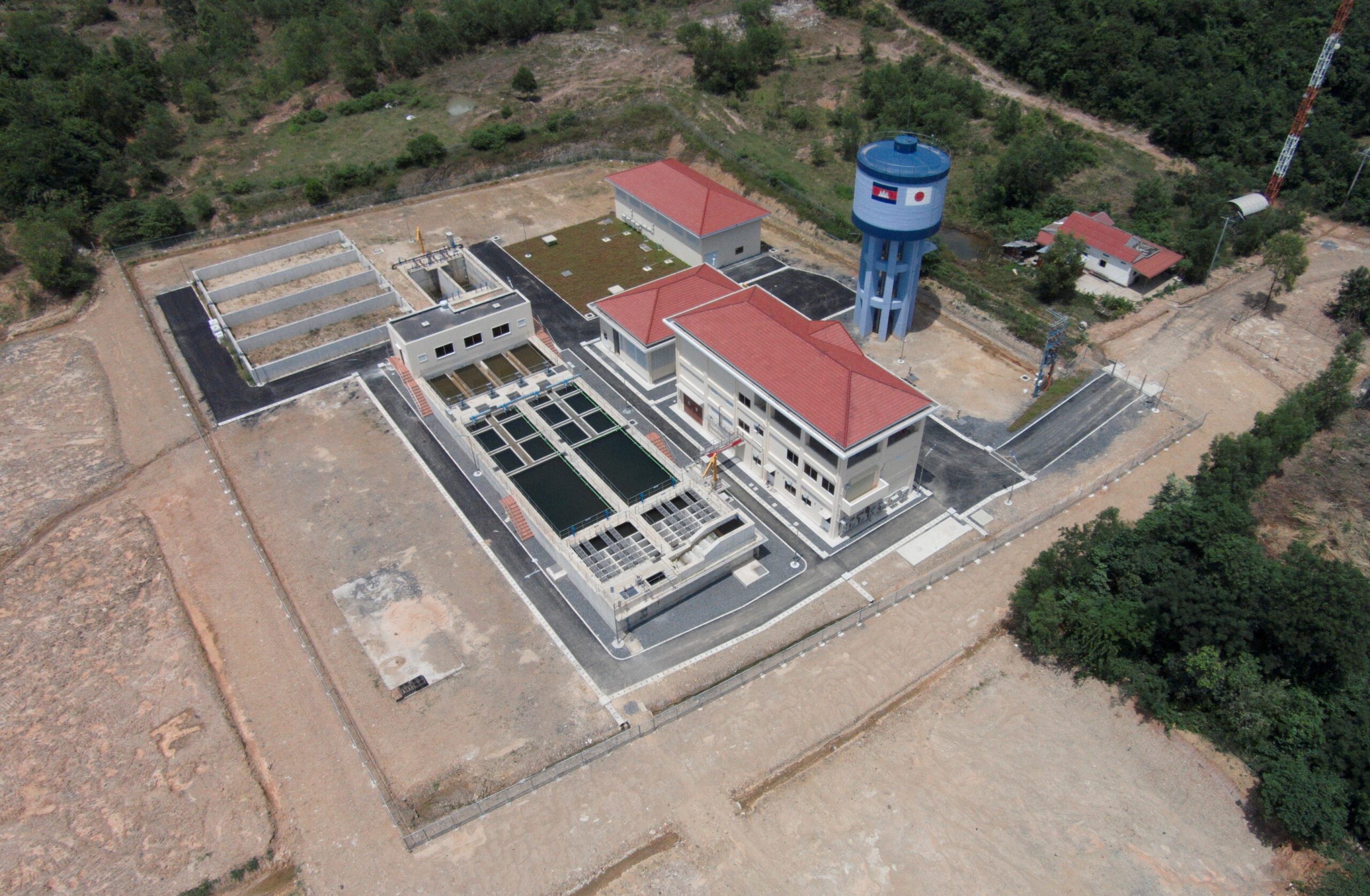 - 整備・拡張されたカンポット浄水場の全景。 処理能力は 7,500㎥ / 日