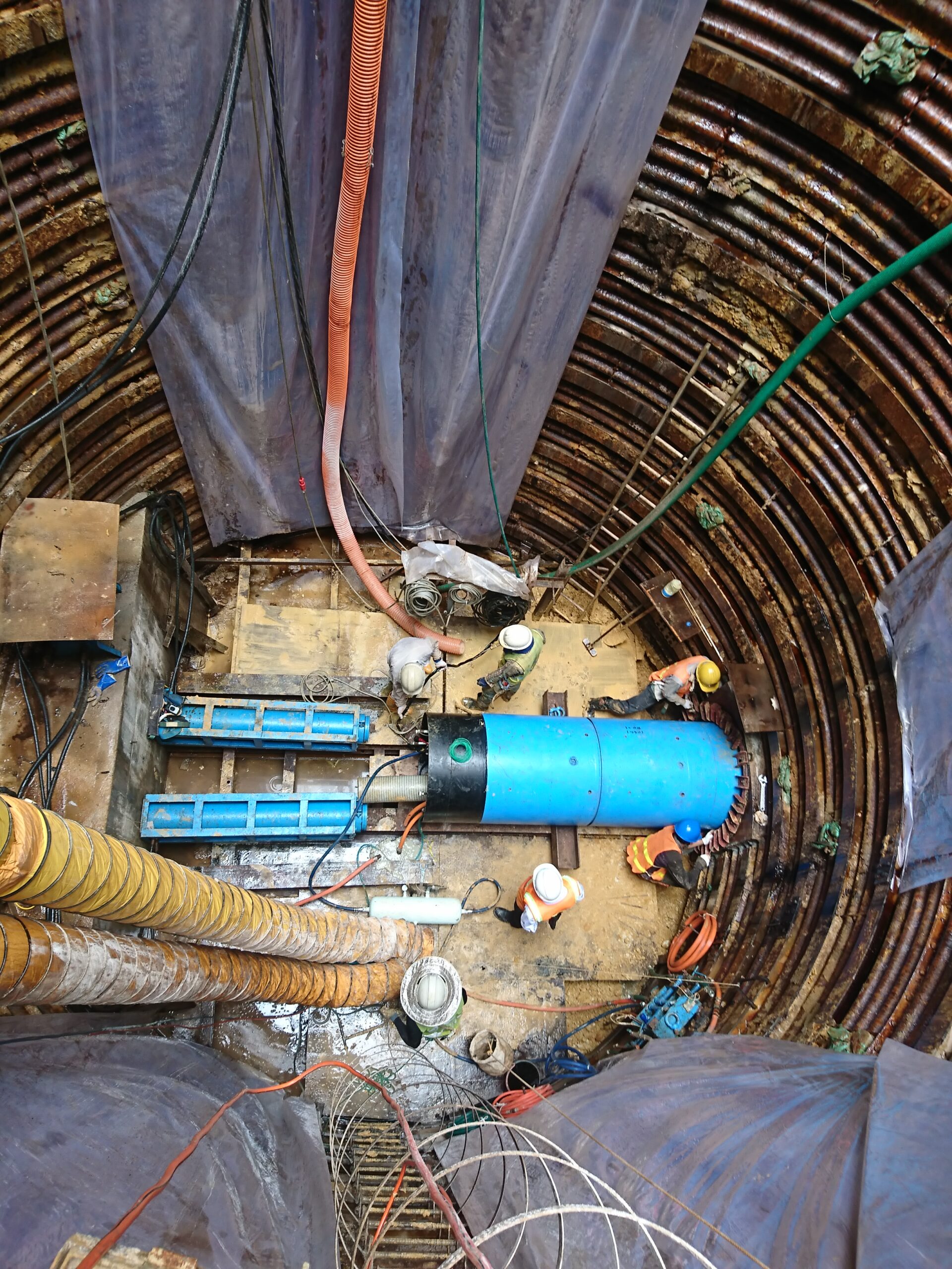 - 推進工の発進口の様子。 推進工法はカンボジアで初めて採用された
