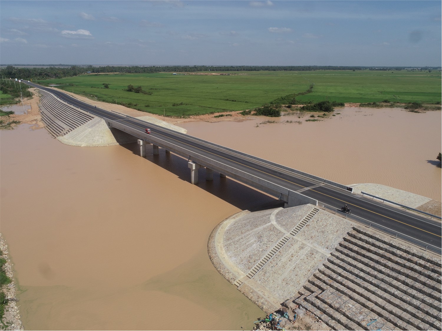 カンボジアではメコン河の増水による洪水被害が頻発している。気候変動の影響も加わり、2011年、13年には大規模な洪水が発生し、交通インフラの損傷など甚大な被害をもたらした。メコン河に近接する道路や橋梁は常に洪水による損傷リスクを抱えている。