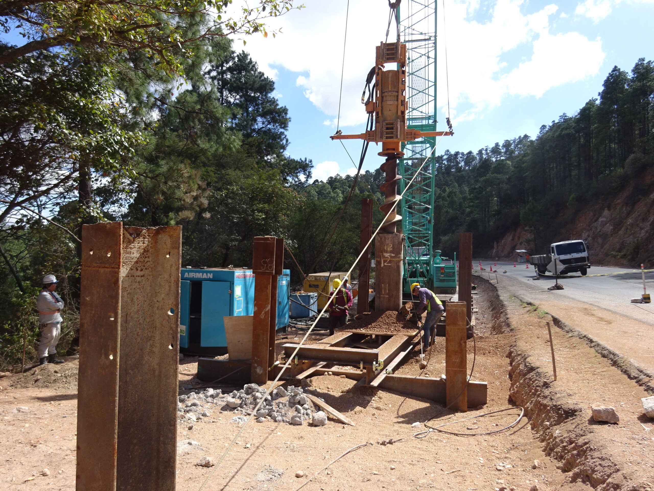 - 鋼管杭の削孔工事(同 22km 地点)