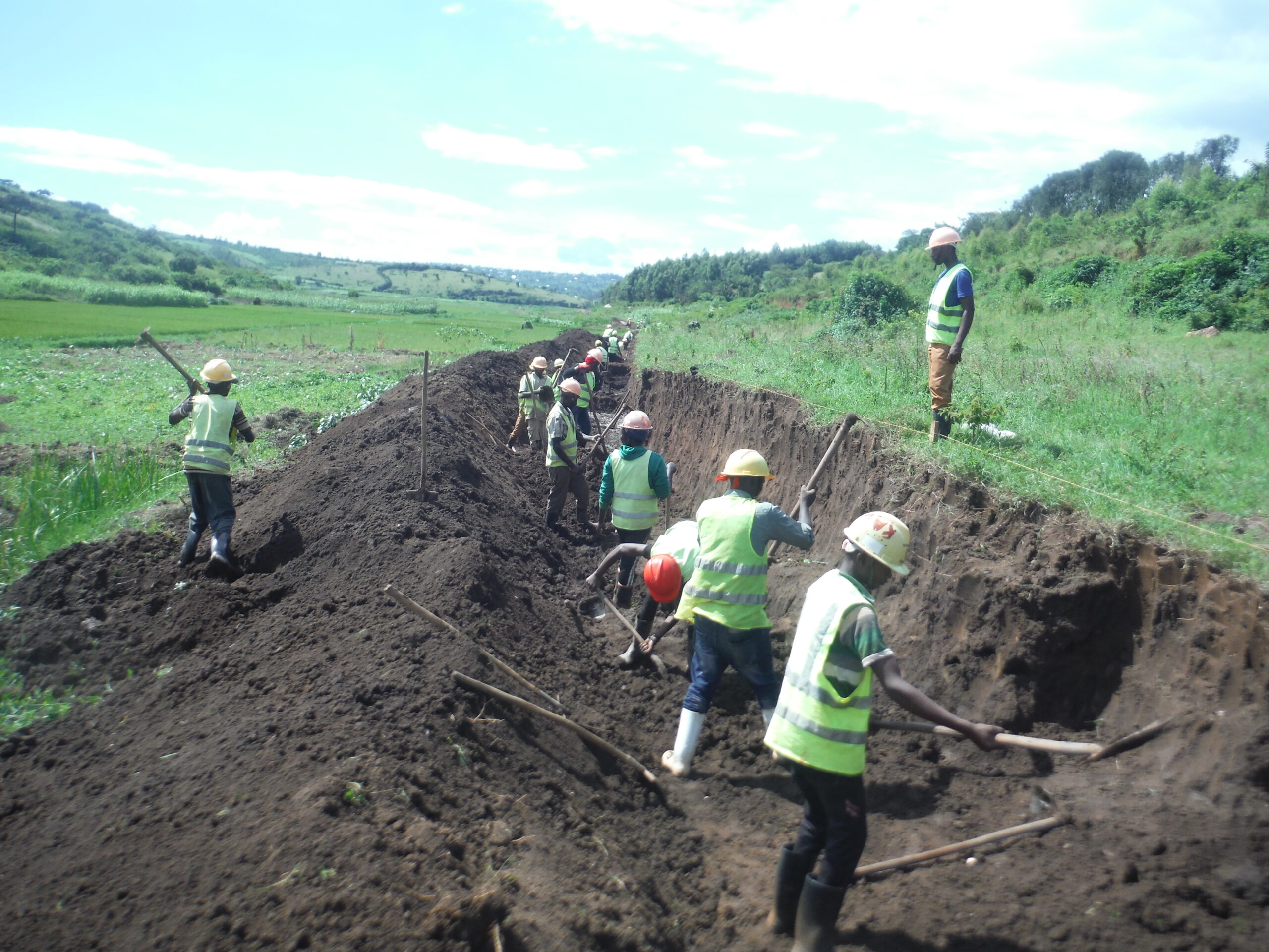 - 用水路延長工事で農民たちは人力掘削で力を発揮した