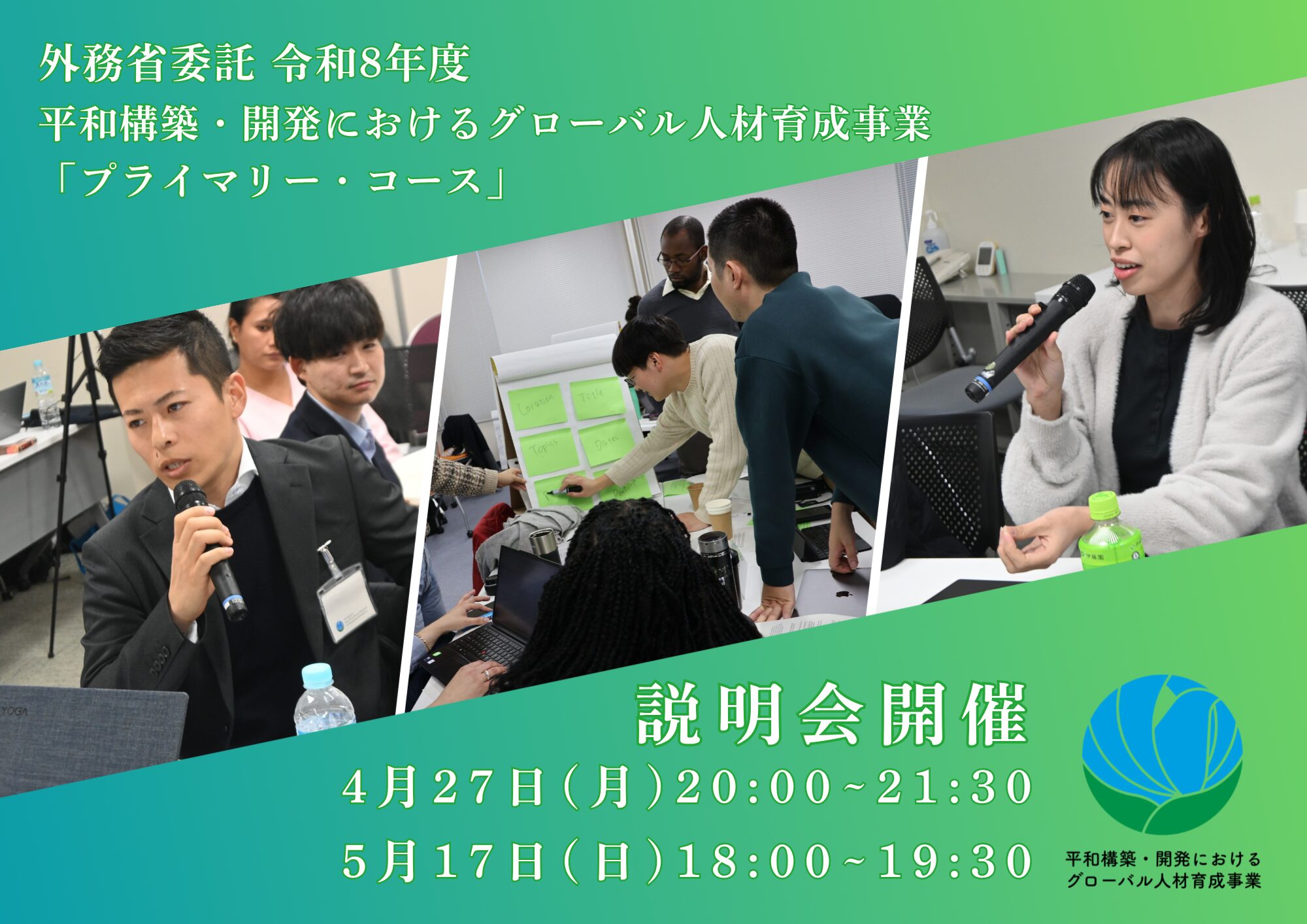 外務省委託 令和8年度平和構築・開発におけるグローバル人材育成事業「プライマリー・コース」のオンライン説明会を開催します!!