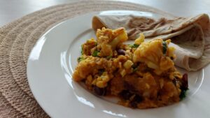 プロテインリッチカリフラワーカレー。レシピは晴天時に太陽光の下で撮影するように意識しているそう