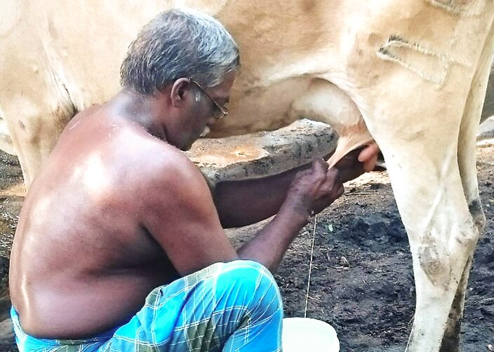 - 農家の多くは手で搾乳し ている