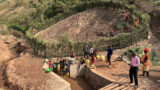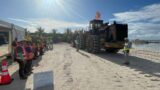 - 道路では、中央分離帯で立ち往生す るトラックも。交通量が多い中、事故発生の危険性 もある状況が見られる