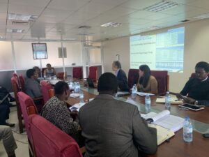カンパラ首都圏都市開発マスタープランの初稿版の内容について、国家物的計画委員会とJICA調査団から説明