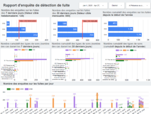 また現場での漏水探知の効率化を図るためには、デジタルでのデータ蓄積が不可欠であった。そこで、ノーコードアプリであるAppSheetを用いて、漏水調査報告アプリを開発。Looker Studioでデータを可視化し、情報共有するシステムも導入した。